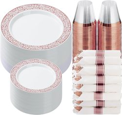 Vintage Roségouden Wegwerp Servieset 50 Stuks Plastic Borden Bestekbekers Servetten Voor Huwelijksfeesten