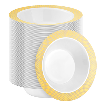 12oz a grade elegante do ouro aparada bacia profunda plástica descartável picosegundo personalizou a quantidade para o casamento do restaurante do partido
