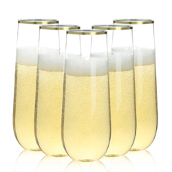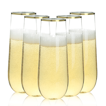 Elegant Gold Rim Plastic Cups 100 Pack Limpar Óculos descartáveis para festa de casamento Aniversário Celebração Champagne Flautas Bulk